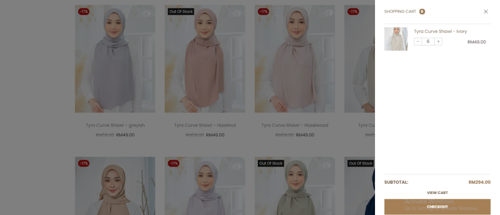 4) You can view your cart by clicking on the shopping cart image at the right top of the page.